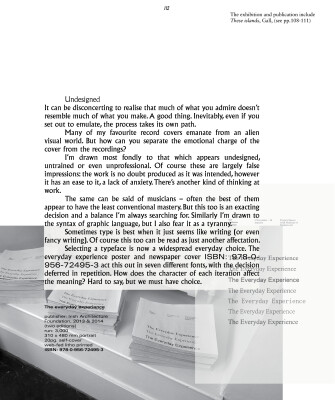 Goggin, J. (2012) ‘2009: Practice from Everyday Life: Defining Graphic Design’s Expansive Scope by Its Quotidian Activities’, Graphic Design: Now in Production, 54–56. Blauvelt, A. and Lupton, E. (eds.). Minneapolis: Walker Art Center.