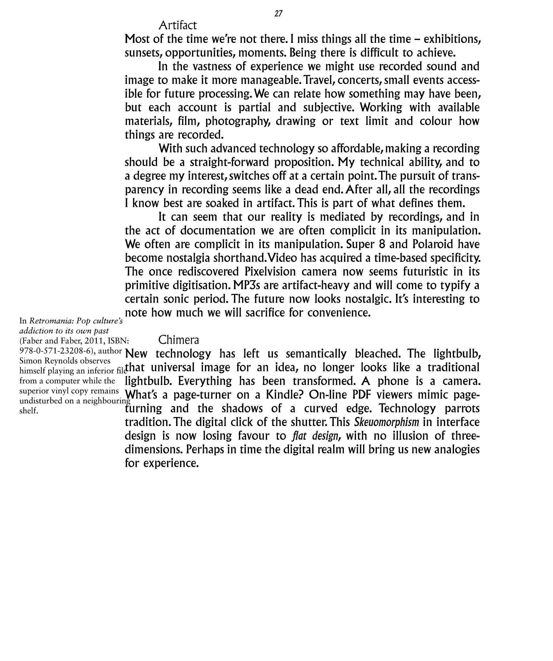 Pantenburg, V. (2011) ‘Medium Promiscuity: Notes on Gerard Byrne’s Film and Video Work’, Images or Shadows, 157–166. Dublin: Irish Museum of Modern Art.