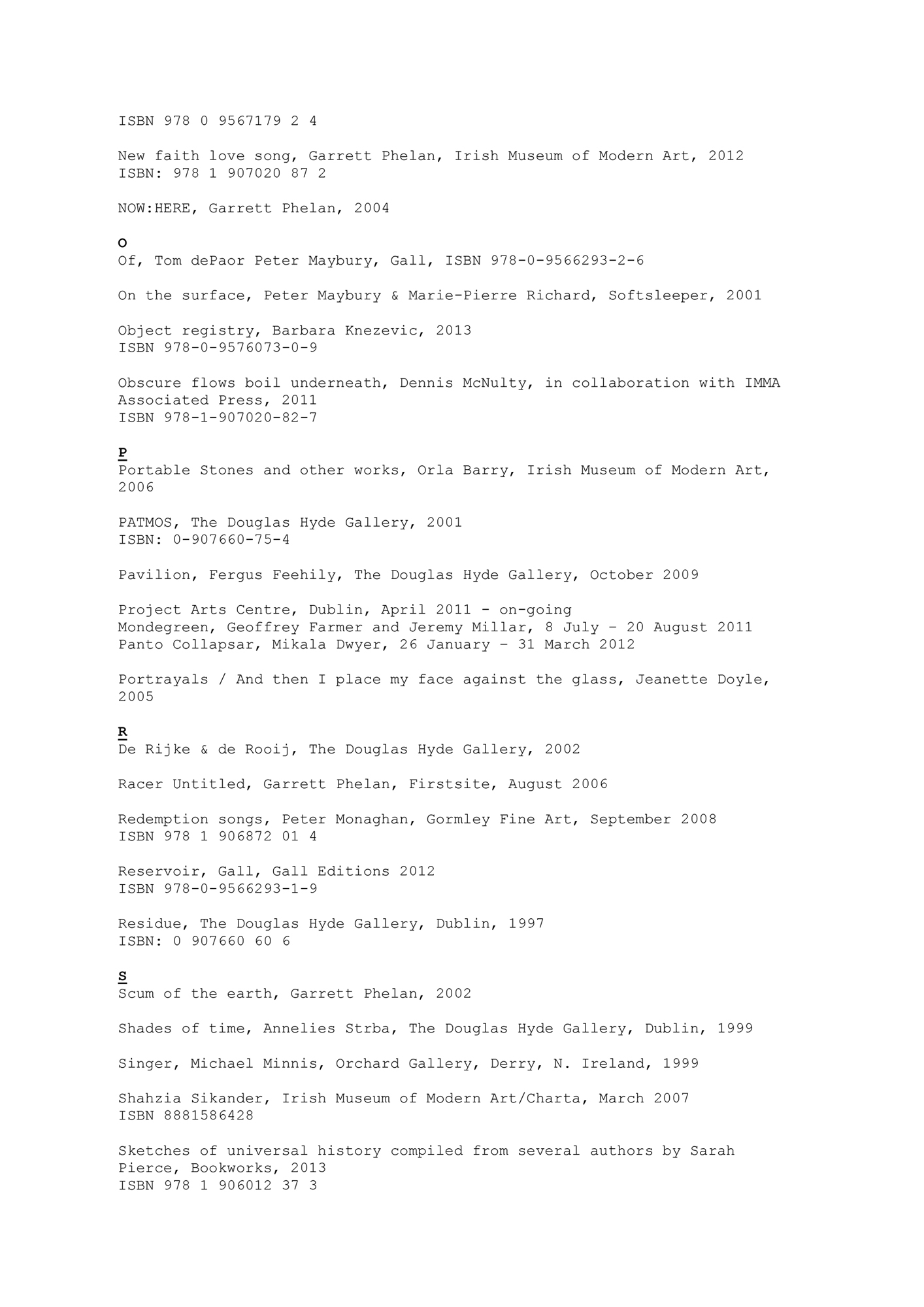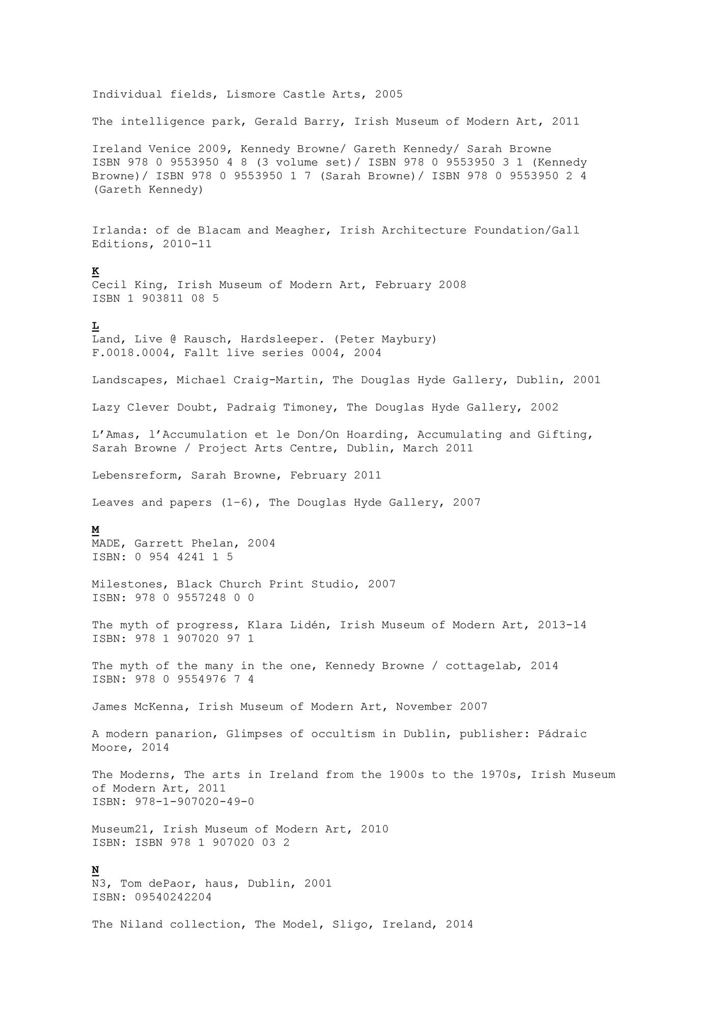 Hutchinson, J. (ed.) (1999) Utopias. Dublin: The Douglas Hyde Gallery.