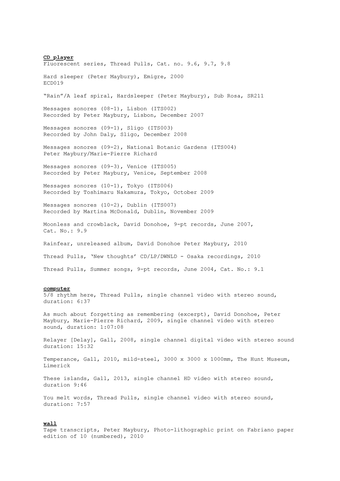 Maybury, P. (2022a) ‘Your Sound Position’, W/HERE: Donohoe, D., n. pag. Available at: https://daviddonohoe.bandcamp.com/album/w-here [Accessed 22 March 2025].